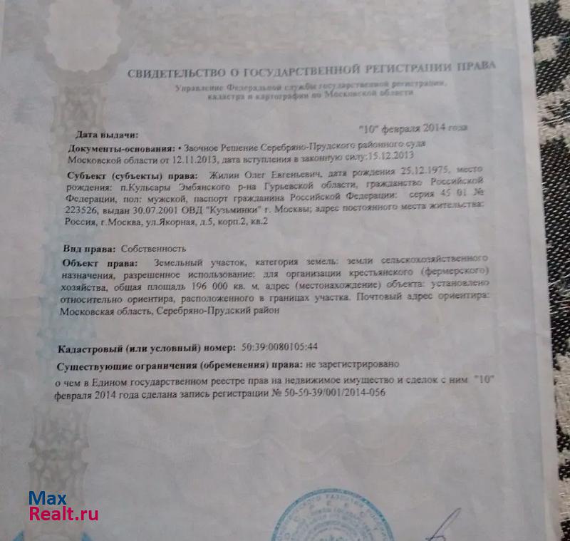Московская область, городской округ Серебряные Пруды 137 км. до Серебряные Пруды