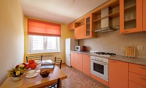Компактная кухня оборудована современной мебелью и всей нужной для длительного проживания бытовой техникой. В распоряжении гостей квартиры полный комплект посуды и кухонной утвари на четыре персоны, чтобы чувствовать себя как дома и готовить привычный рацион по своему вкусу.
