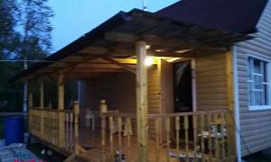 На участке 14 соток расположены зимний дом (5 на 7 м) с просторной террасой (2 на 7 м); баня в очень хорошем состоянии; хозяйственная постройка, в которой расположен душ (подключен к бойлеру и насосу для воды) и биотуалет.