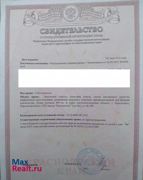 Красноярский край, Красноярск, Кировский район, СНТ Сад № 2 Завода Красцветмет