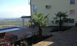 Земельный участок – 19 соток, индивидуальный заезд, автоматические ворота, большая въездная площадка перед домом (возможно размещение вертолетной площадки). Зона отдыха, всегда защищена от ветра и от посторонних взглядов, здесь комфортно даже зимой. В зоне отдыха расположена огромная беседка с большим столом из натурального камня и кованой мебелью. Беседка оборудована летней кухней с мангалом – коптильней. Открытый бассейн с подогревом 3х8, солярий, розарий, пальмы, фонтанчик. На территории также – виноградник, взрослые плодоносящие и декоративные деревья, альпийская горка и т.д.