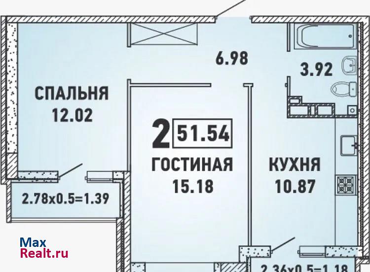Квартира, 2-комнатная, 51.5 м², 5/18