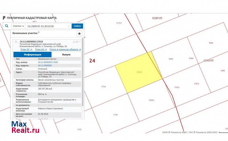 Красноярский край Емельяновский район п. Солонцы ул. Победы 53 площадь 954