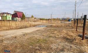Участок отсыпан песком и по всему периметру вкопаны столбы под забор. Имеет выход на 2 улицы.